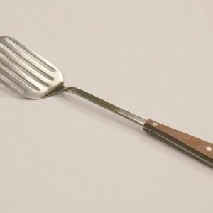 - KN6331 Cooking slotted turner with wooden handle 36cm(L.)thickness: 2.5mm 18/0 stainless steel
