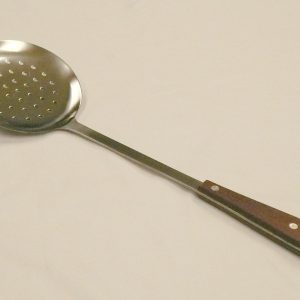 - KN6333 10.5cm(D.) Rice skimmer with wooden handle 34.5cm(L.)thickness: 2.5mm 18/0 stainless steel