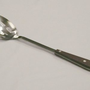- KN6334 Cooking slotted spoon with wooden handle 33.5cm(L.) thickness: 2.5mm 18/0 stainless steel