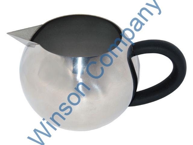 Milk jug — CA5414 CA5414 Milk jug; dia.9.3cm x 9.5cm(H) with black plastic hanlde & cover top. capacity: 370ml(12oz) 18/8 stainless steel