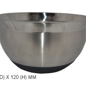 - KN6576 216(D)x120mm(H) 18/8 stainless steel 0.7mm mixing bowl with round rim and non-slip black silicon base 18/8 stainless steel