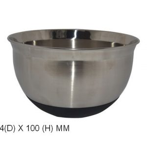 - KN6577 174(D)x100mm(H) 18/8 stainless steel 0.6mm mixing bowl with round rim and non-slip black silicon base 18/8 stainless steel