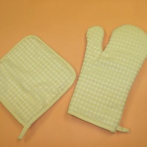 - KN6390 12 Jacquard oven mitten + 8 pot holder set cream colour(FTY#2233-1)