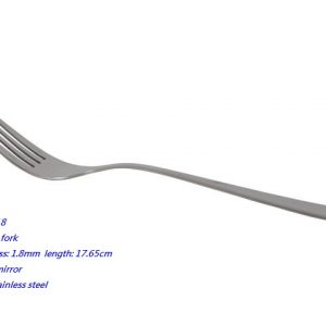 - 0603R18 Dessert fork thickness: 1.8mm length: 17.65cm finish: mirror Dessert fork thickness: 1.8mm length: 17.65cm finish: mirror 18/0 stainless steel