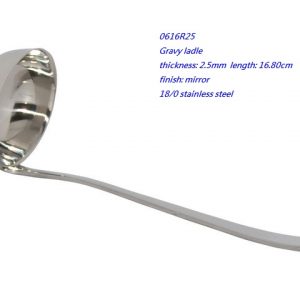 - 0616R25 Gravy ladle thickness: 2.5mm length: 16.80cm finish: mirror Gravy ladle thickness: 2.5mm length: 16.80cm finish: mirror 18/0 stainless steel