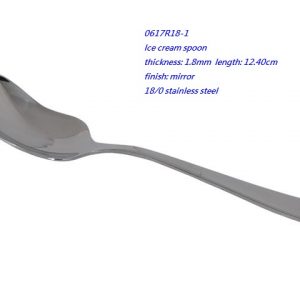 - 0617R18-1 Ice cream spoon thickness: 1.8mm length: 12.40cm finish: mirror Ice cream spoon thickness: 1.8mm length: 12.40cm finish: mirror 18/0 stainless steel