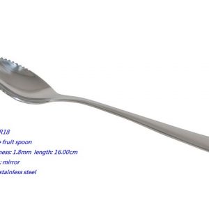 - 0618R18 Grape fruit spoon thickness: 1.8mm length: 16.00cm finish: mirror Grape fruit spoon thickness: 1.8mm length: 16.00cm finish: mirror 18/0 stainless steel