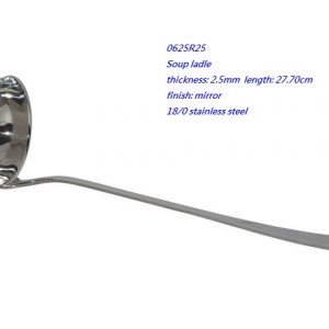 - 0625R25 Soup ladle thickness: 2.5mm length: 27.70cm finish: mirror Soup ladle thickness: 2.5mm length: 27.70cm finish: mirror 18/0 stainless steel