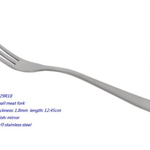 - 0629R18 Small meat fork thickness: 1.8mm length: 12.45cm finish: mirror Small meat fork thickness: 1.8mm length: 12.45cm finish: mirror 18/0 stainless steel