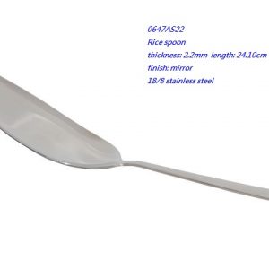 - 0647AS22 Rice spoon thickness: 2.2mm length: 24.10cm finish: mirror Rice spoon thickness: 2.2mm length: 24.10cm finish: mirror 18/8 stainless steel