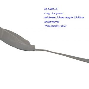 - 0647BLS25 Long rice spoon thickness: 2.5mm length: 29.80cm finish: mirror Long rice spoon thickness: 2.5mm length: 29.80cm finish: mirror 18/8 stainless steel