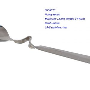 - 0658S15 Honey spoon thickness: 1.5mm length: 14.40cm finish: mirror Honey spoon thickness: 1.5mm length: 14.40cm finish: mirror 18/8 stainless steel
