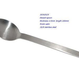 - 16302S25 Dessert spoon thickness: 2.5mm length 184mm finish: satin 18/8 stainless steel