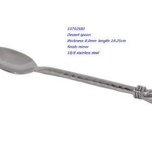 - 10702S80 Dessert spoon thickness: 8.0mm length: 19.25cm finish: mirror 18/8 stainless steel