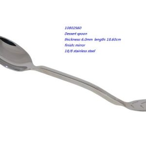 - 10802S60 Dessert spoon thickness: 6.0mm length: 18.60cm finish: mirror 18/8 stainless steel