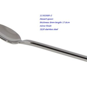 - 11302S80 Dessert spoon thickness: 8.0mm length: 18.30cm finish: mirror 18/8 stainless steel