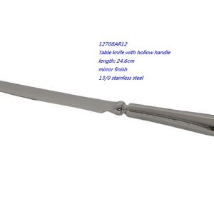 - 12708AR12 Table knife with hollow handle length: 24.6cm mirror finish 13/0 stainless steel