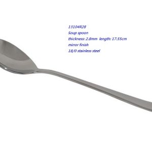 - 13104R28 Soup spoon thickness: 2.8mm length: 17.55cm mirror finish 18/0 stainless steel