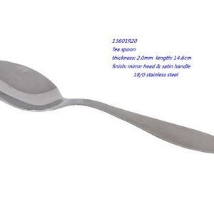 - 13601R20 Tea spoon thickness: 2.0mm length: 14.6cm finish: mirror head & satin handle 18/0 stainless steel