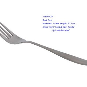 - 13605R28 Table fork thickness: 2.8mm length: 20.2cm finish: mirror head & stain handle 18/0 stainless steel