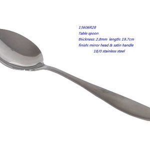 - 13606R28 Table spoon thickness: 2.8mm length: 19.7cm finish: mirror head & satin handle 18/0 stainless steel