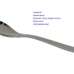 - 13802S70 Dessert spoon thickness: 7.0mm length: 18.2cm finish: mirror 18/8 stainless steel