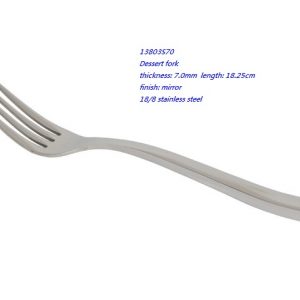 - 13803S70 Dessert fork thickness: 7.0mm length: 18.25cm finish: mirror 18/8 stainless steel