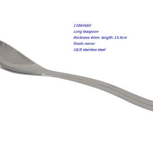 - 13864S60 Long teaspoon thickness: 6mm length: 15.9cm finish: mirror 18/8 stainless steel