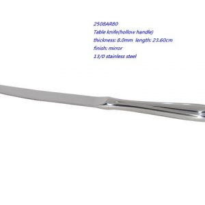 - 2508AR80 Table knife(hollow handle) thickness: 8.0mm length: 23.60cm finish: mirror 13/0 stainless steel
