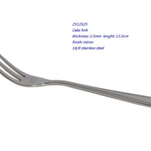 - 2512S25 Cake fork thickness: 2.5mm lenght: 13.5cm finish: mirror 18/8 stainless steel