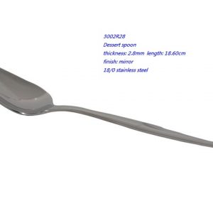 - 3002R28 Dessert spoon thickness: 2.8mm length: 18.60cm finish: mirror 18/0 stainless steel