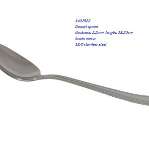 - 3402R22 Dessert spoon thickness: 2.2mm length: 18.20cm finish: mirror 18/0 stainless steel