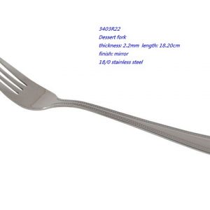 - 3403R22 Dessert fork thickness: 2.2mm length: 18.20cm finish: mirror 18/0 stainless steel