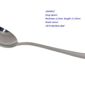 - 3404R22 Soup spoon thickness: 2.2mm length: 17.20cm finish: mirror 18/0 stainless steel