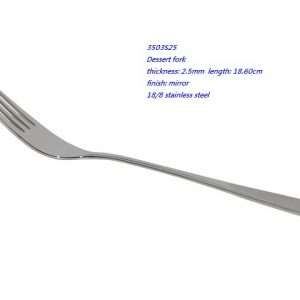 - 3503S25 Dessert fork thickness: 2.5mm length: 18.60cm finish: mirror 18/8 stainless steel