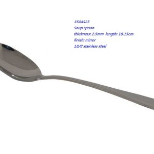 - 3504S25 Soup spoon thickness: 2.5mm length: 18.15cm finish: mirror 18/8 stainless steel