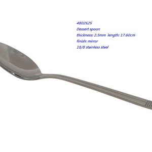 - 4802S25 Dessert spoon thickness: 2.5mm length: 17.60cm finish: mirror 18/8 stainless steel