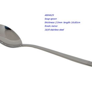 - 4804S25 Soup spoon thickness: 2.5mm length: 16.60cm finish: mirror 18/8 stainless steel