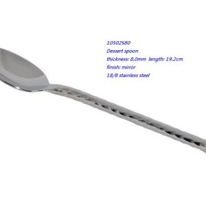 - 10502S80 Dessert spoon thickness: 8.0mm length: 19.2cm finish: mirror 18/8 stainless steel