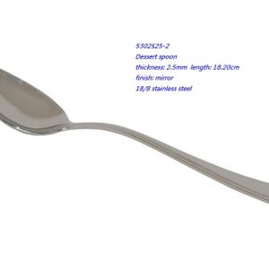 - 5302S25-2 Dessert spoon thickness: 2.5mm length: 18.20cm finish: mirror 18/8 stainless steel