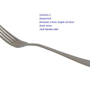 - 5303S25-2 Dessert fork thickness: 2.5mm length: 18.30cm finish: mirror 18/8 stainless steel