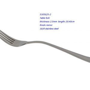 - 5305S25-2 Table fork thickness: 2.5mm length: 20.40cm finish: mirror 18/8 stainless steel