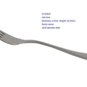 - 5335R25 Fish fork thickness: 2.5mm length: 18.30cm finish: mirror 18/0 stainless steel