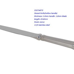- 5507AR70 Dessert knife(hollow handle) thickness: 1.0mm-handle 1.8mm-blade length: 20.60cm finish: mirror 13/0 stainless steel