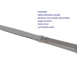 - 5508AR80 Table knife(hollow handle) thickness: 1mm-handle 1.8mm-blade length: 24.40cm finish: mirror 13/0 stainless steel