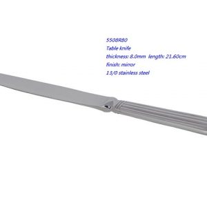 - 5508R80 Table knife thickness: 8.0mm length: 21.60cm finish: mirror 13/0 stainless steel