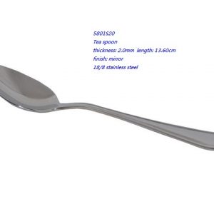 - 5801S20 Tea spoon thickness: 2.0mm length: 13.60cm finish: mirror 18/8 stainless steel