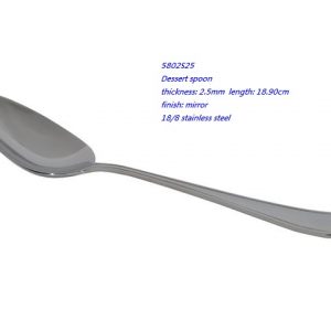 - 5802S25 Dessert spoon thickness: 2.5mm length: 18.90cm finish: mirror 18/8 stainless steel