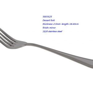 - 5803S25 Dessert fork thickness: 2.5mm length: 18.40cm finish: mirror 18/8 stainless steel