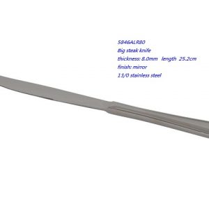 - 5846ALR80 Big steak knife thickness: 8.0mm 25.2cm length finish: mirror 13/0 stainless steel